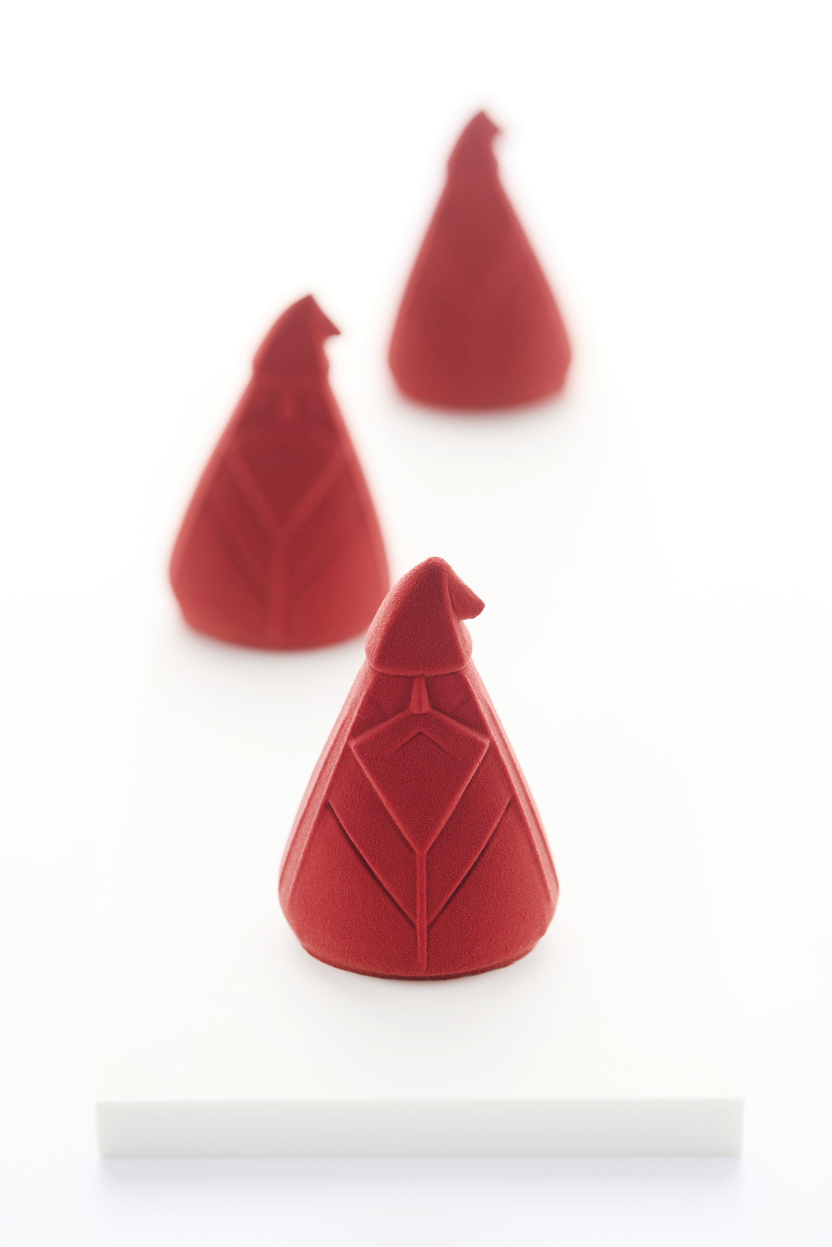 Un omaggio minimalista alla tradizione natalizia. Questo Babbo Natale astratto dà un tocco moderno alle festività natalizie con la sua forma pulita e giocosa. Pensato per i pasticceri che amano creare dessert che catturano il calore e il carattere dell'inverno. Perfetto per petit gateaux festosi o per un'amenità natalizia creativa.