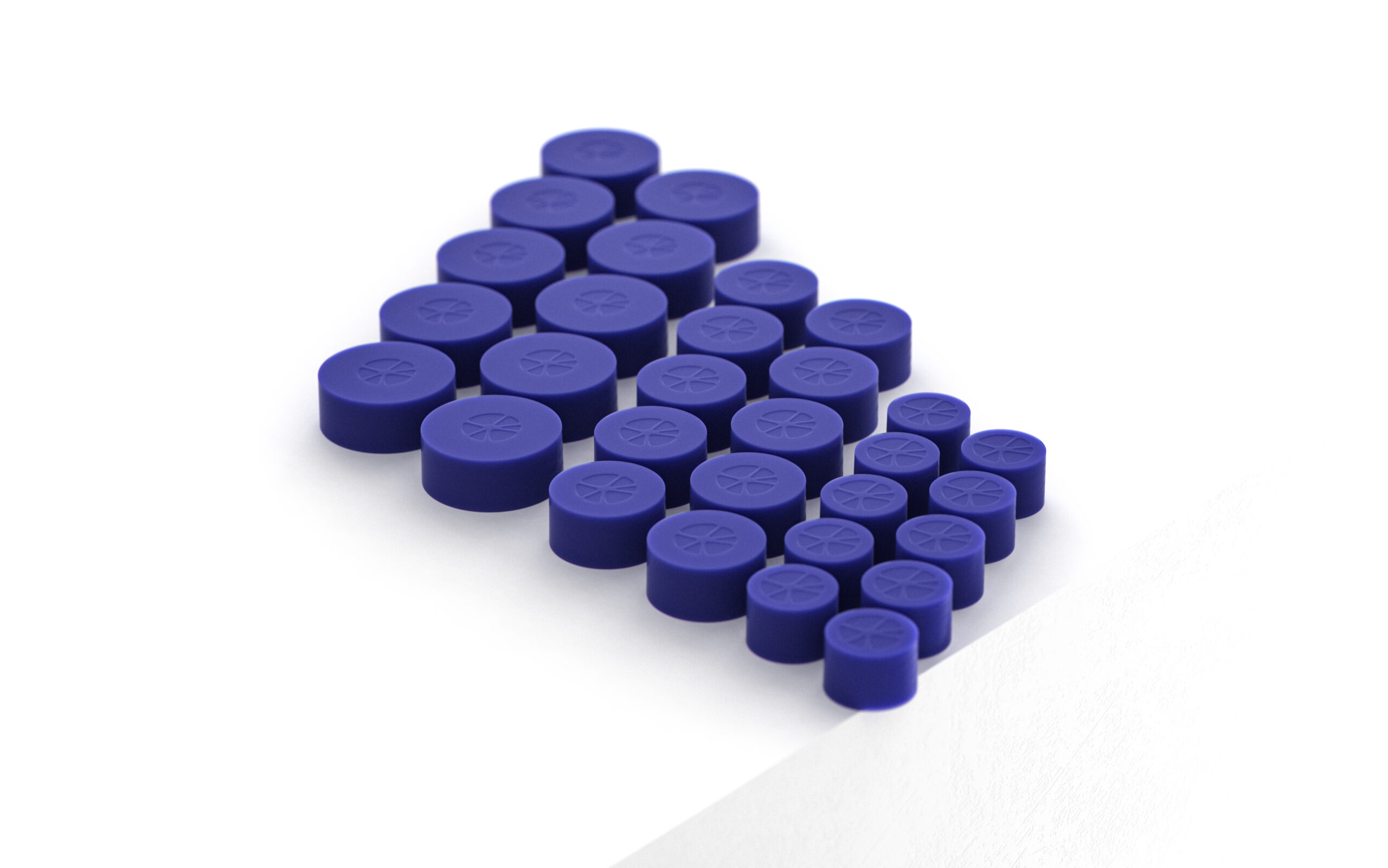 ⌀ 3 cm, 4 cm, 5 cm - allemaal met een hoogte van 2 cmElke maat wordt geleverd in sets van 10